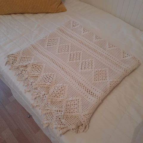 Vändbart sängöverkast 180x250 cm. Kantat. Två hörn rundade, Inte särskilt mycket använt.