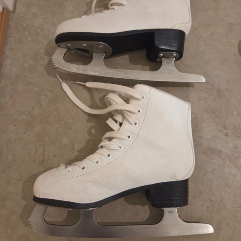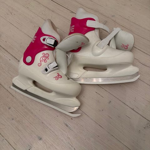 Skridskor i väldigt fint skick. Strl 33 med piggar, inköpta vintern 24/25, slipade sparsamt använda.