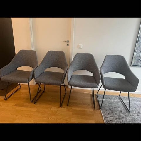 Säljer våra fina Sofacompany matbordsstolar, 6st i okej skick. Endast hämtning från Vasastan, betalning med Swish.