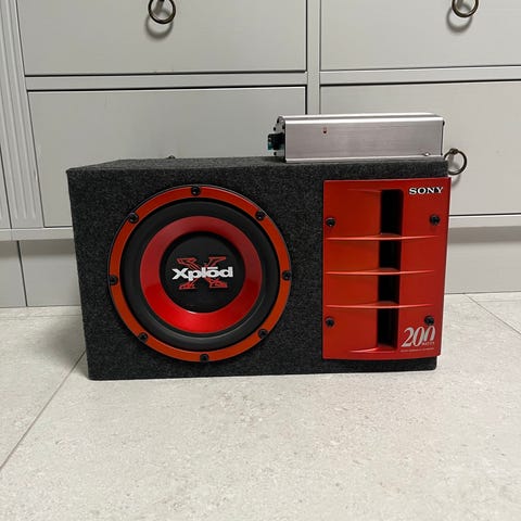 Pioneer bärbar högtalare med svart och röd design. Enheten har två högtalare och är avsedd för ljuduppspelning.