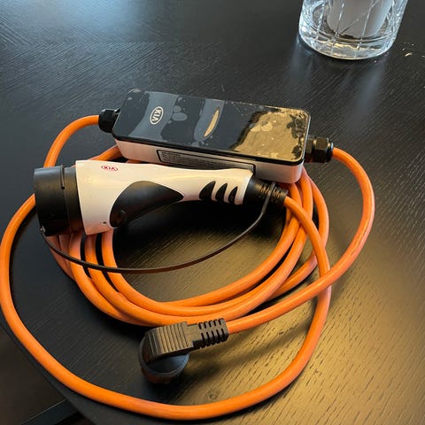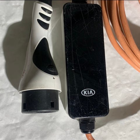Funkar som den ska, har repor och är synligt använd. Laddaren är originalt för Kia Soul EV, men bör funka för andra bilar som har Type 1 uttag.