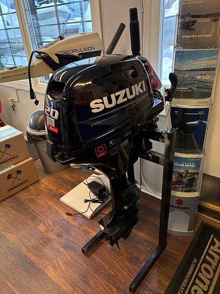 Smidig utombordare 500W med fällbar rorkult, inbyggt batteri, laddare och väska.