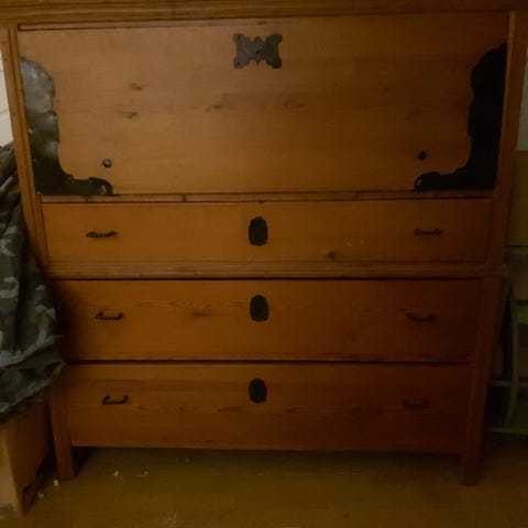 En antik avlutad chiffonge. Höjd 1,20 m bredd 1,20 m. Ring 018342336.