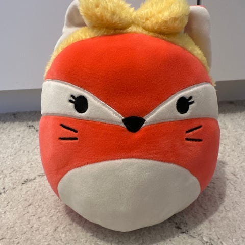 Säljer ett paket med tre Squishmallows gosedjur. Innehåller en blå ko, en katt och en leopard.