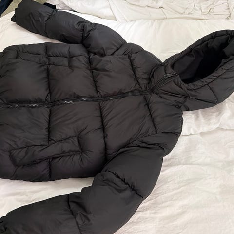 En liten svart fläck på baksidan till höger (se bild), men det är inget jag sett förrän nu när jag skulle sälja jackan.