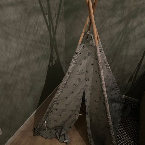 Jollyroom Barninredning Tält i beige färg. Tillverkad av tyg med trästänger. Passar som lek- och mysplats för barn.