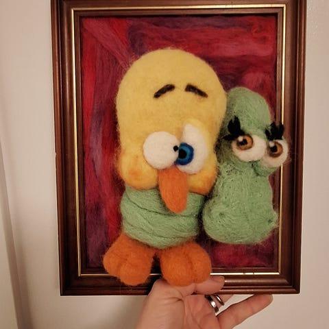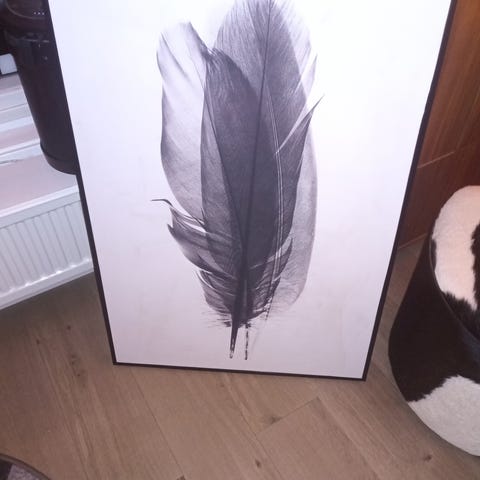 Fin stor broderad tavla med fin guldig ram,liten skada på ramen men syns inte när den hänger på väggen se sista bild.