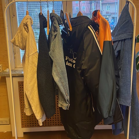 Säljer en klädhängare/klädstång med en justerbar höjd med måtten, B90xH100-175xD45cm