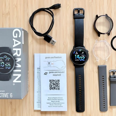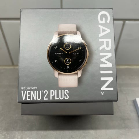 Garmin Venu 2 är en smartklocka med svart färg och rund urtavla. Den har funktioner för hälsomätning och aktivitetsövervakning, inklusive pulsmätning och notiser. Klockan levereras i originalförpackning.