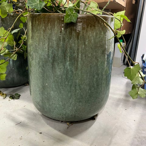 Vitt Planteringskärl i keramik . Tillverkad i Portugal. Diameter 24,5 cm, höjd 12,5 cm. Volym c:a 3,5 l.