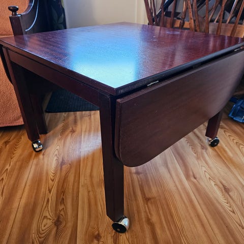 Ett retro bord med tidningshylla målat i rött. Perfekt om man vill få in lite färg i hemmet.