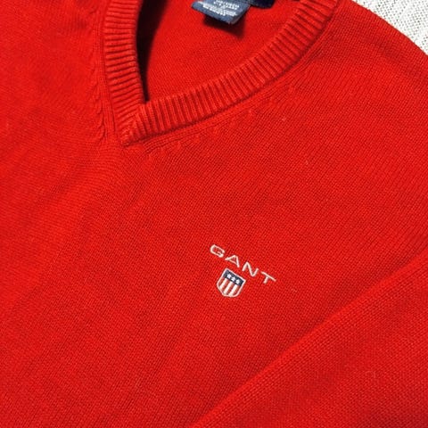 Tröja ribbstickad röd GANT i bomull, stl 146/152 cm 11-12 år, 225 kr.
