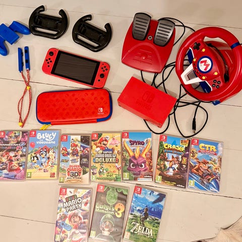 Den levereras också med ett Sandisk för Nintendo 128 GB minneskort för att lagra nedladdade spel och speldata.