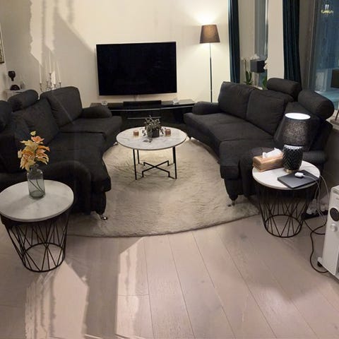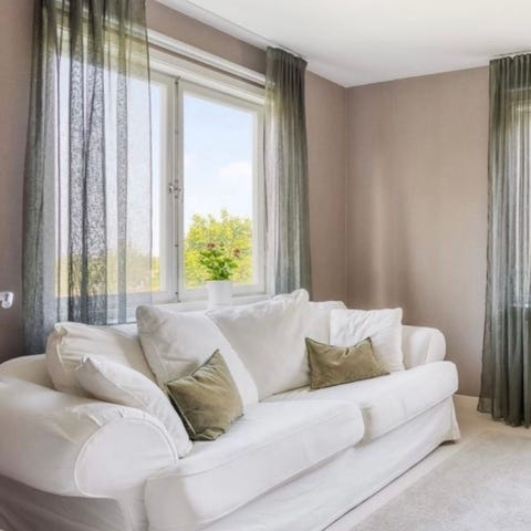 Sittkuddarna är stoppade med en blandning av dun och fjädrar för extra komfort. Går att puffa upp när den känns nedsutten. Kuddar och dynor har avtagbara klädslar.