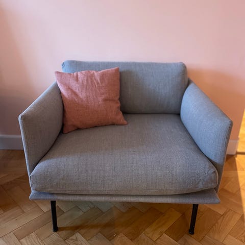 Säljer en unik Aura Chair L, designad av Mikko Laakkonen för finska Inno. En ikonisk fåtölj med hög rygg som ger både avskildhet och fantastisk komfort.