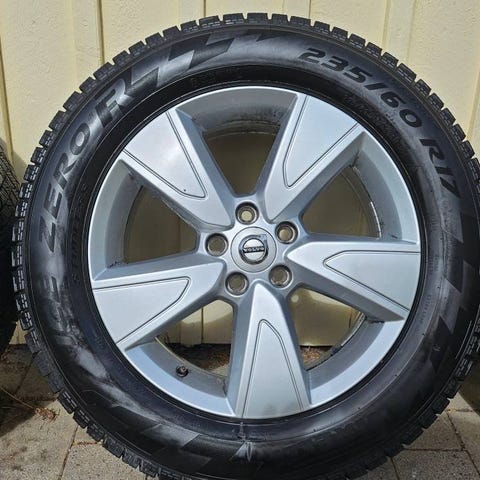 Säljer ett set original Volvo 17" 7-ekrade silver fälgar med Pirelli Winter ICE Zero FR vinterdäck.