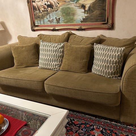souffgroup med 2 fåtölj brun färg , plus bordaoffa med 2 sidobord