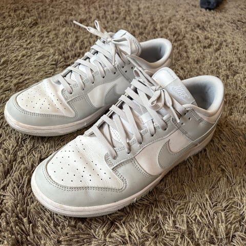 Nike Sneakers i storlek 42 med vit färg. Skorna är avsedd för vardagligt bruk och har en klassisk design med snörning. Materialet är främst syntetiskt och textil, vilket ger en lätt och bekväm passform.