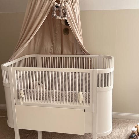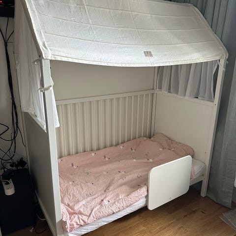 se bilderna för ett litet fel med sängen då färgen har skavts bort för man stoppar in spjälarna. Syns endast när man tar ut spjälar. Annars mycket fint skick.