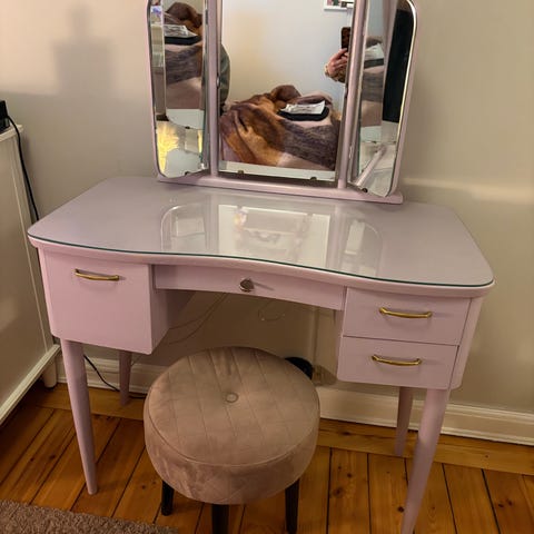 Smidig och charmig liten möbel i teak med förvaring. Passar bra som sidobord, sminkpall, hallmöbel eller nattduksbord. Jag har använt den i vardagsrummet, men den får inte längre plats.
