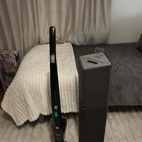 Den har till en början använts ett par gånger i veckan när vi bodde i lägenhet men har efter flytt till hus mestadels stått orörd då vi endast kör med vanlig dammsugare. Fungerar som den ska och är i normalt begagnat skick med spår av användning.