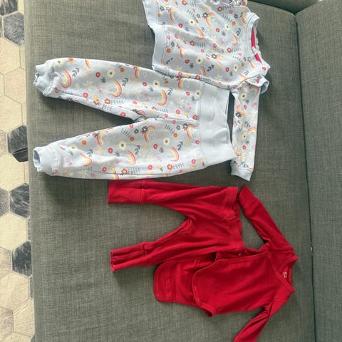 Två bodies, två pyjamasar o Tre par byxor! HAR flera annonser ute i storlek 62 så kika gärna! Samfraktar!
