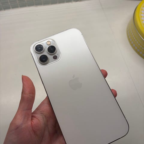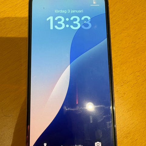 Apple iPhone 12 Pro mobiltelefon med 128 GB lagringskapacitet. Telefonen har en vit färg och är utrustad med flera kameror på baksidan, på en av kamerorna är det en spricka (se bild). Batterihälsan är 72 procent. Den har repor på framsidan ( se bild) men annars bra skick!!