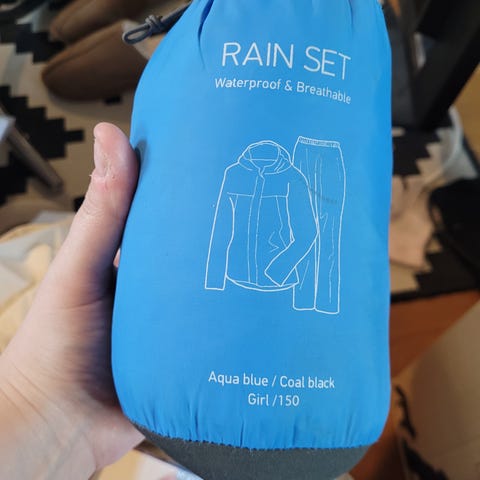 Kläderna är hela och fina. Det är ofodrade och är därför lämpliga till sommarregn.