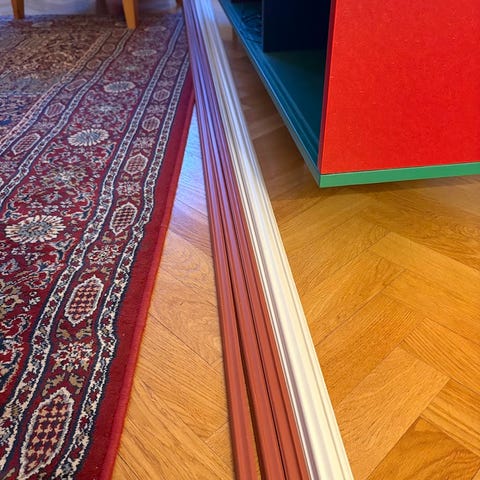 Kan användas som dekorlist för att dölja lampor, sladdar och kontakter under väggskåp eller som krönlist ovanpå väggskåp och högskåp.