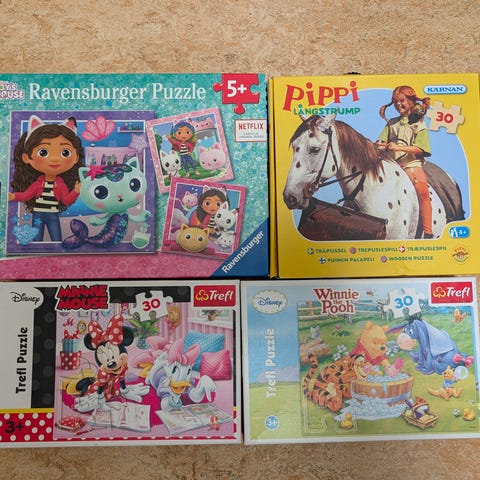 10 pussel med olika motiv och svårighetsgrad (större och mindre bitar). Olika Greta Gris motiv.