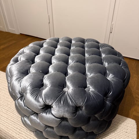 Säljer en väldigt fin Soffpuff i fint skick ej mycket använd saknar en knapp och sprucken under se bild men absolut inget som påverkar