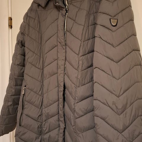Lång härlig typ ”Mammakappa” inköpt i ridbutik. Avtagbar kapuschong, flera snygga detaljer. Slits bak som går att knäppa upp.