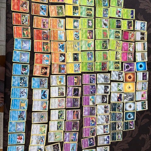 Samling av Pokémon-kort från olika serier.