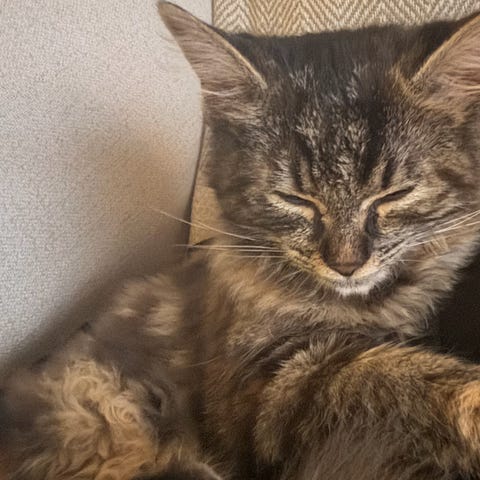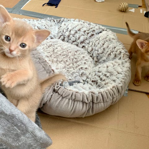Den bruna blev det aldrig några ungar på , det togs sig aldrig. Och när hon blev dräktig sig ungen. Så därför är hon kastrerad. Blev överviktig i samband med dräktighet. Lite försiktig, kommer fram bara vid förtroende . Behöver kalorie snål kost och större yta att röra sig på . Ingen barnfamilj.