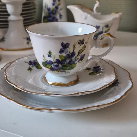 Hackefors Servisdelar i porslin med guldkant