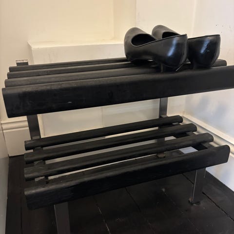 Svart skohylla