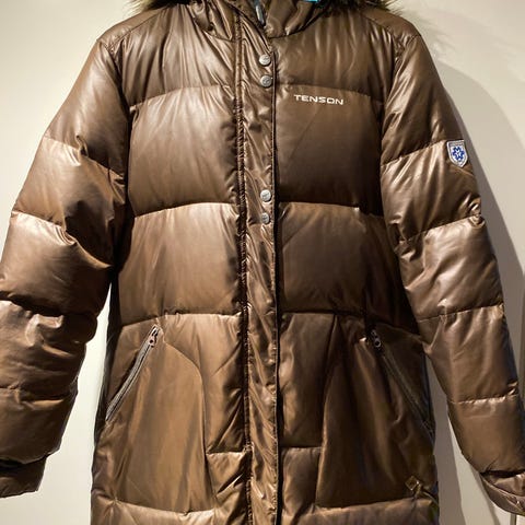 Tenson varmfodrad vinterjacka brun. Vattenavvisande utsida. Huva med pälskrage. Strl 46. Sparsamt använd