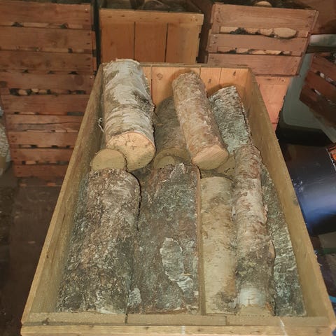 Brasved. Ca 25 cm långa. Ca 80 liter