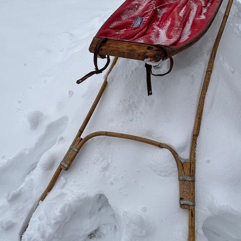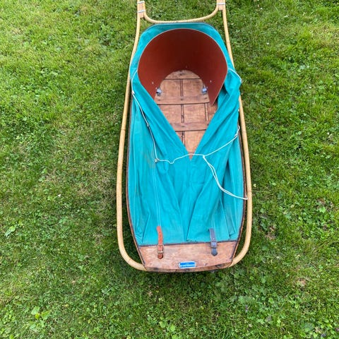 Jag och min bror har ju de senaste 45 åren kunnat stå på egna skidor så jag tänker att det kanske är dags att låta någon annan ta över pulkan. Du som gillar nostalgi-prylar, turskidor och vill ha en liten blivande skidåkare eller packning med på turen, kolla in denna! Original, i fint skick.
