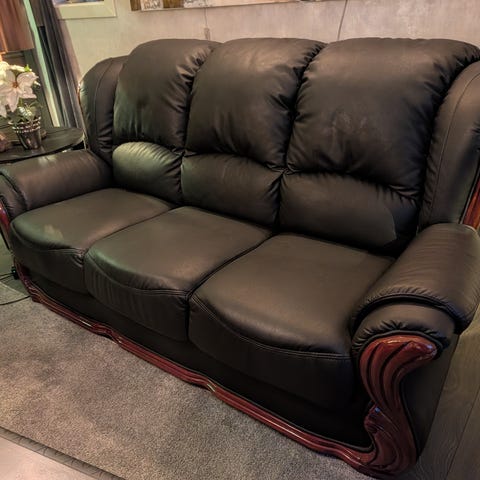 Svart lädersoffa med reclinerfunktion 3-sits