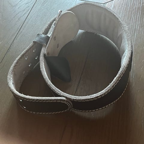 Kvalitet lyftarbälte i läder, endast testad 1 gång, så det är som nytt. Längd 110 cm, finns flera distanser (se bild) Säljes för endast 300kr (nypris 599kr).