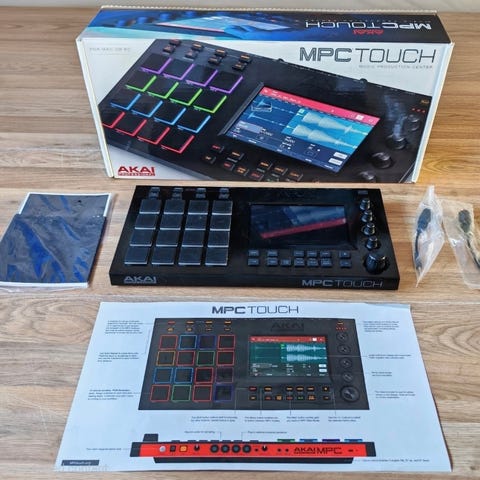 Akai MPD226 MIDI-kontroller med 16 tryckkänsliga pads, flera reglage och knappar. Enheten är svart och används för musikproduktion och liveframträdanden.
