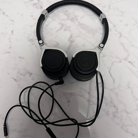 Logitech trådlösa hörlurar i svart färg med justerbar huvudbygel och öronkuddar i tygmaterial. Utrustade med volymkontroll och trådlös USB-mottagare för anslutning.