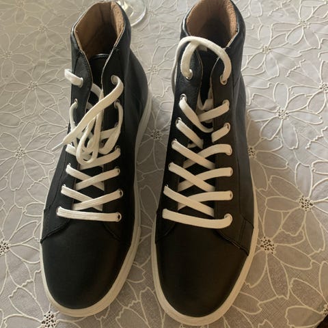 Converse Sneakers i svart färg, storlek 38. Skorna är av klassisk modell, ankelhöga och snörning framtill. Materialet är skinn och designen är unisex.