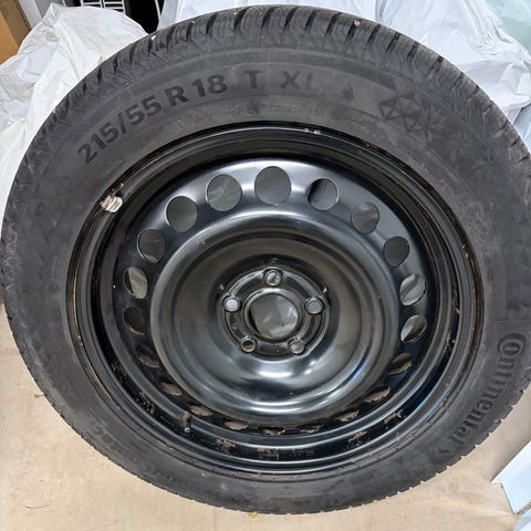 Däck och fälgar är i nyskick. De har rullat cirka 5 mil och har tidigare suttit på en Volkswagen Crafter 2024 årsmodell.