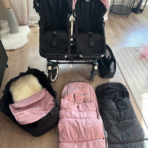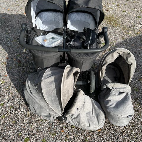 Hej vill sälja denna syskon barnvagn då den inte passade in i mitt förråd