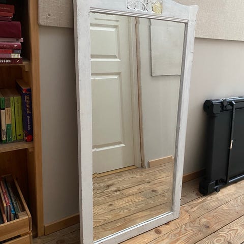 1säljer min fina väggspegel som är gjort av en äldre fönsterbåge. Lite shabby chic