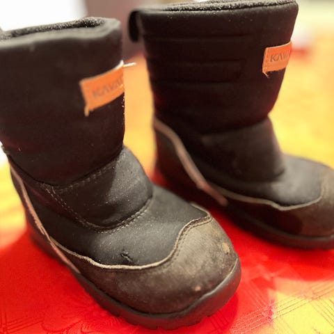 Kavat vinterstövlar för barn, unisex, i storlek 24. Stövlarna är svarta och designade för att hålla fötterna varma under kalla förhållanden.