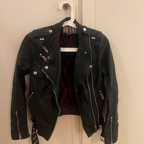 Skinnjacka av Jofama by Caroline Roxy, knappt använd mest hängt i garderoben därav jag säljer den. Skinnjacka med mockadetaljer