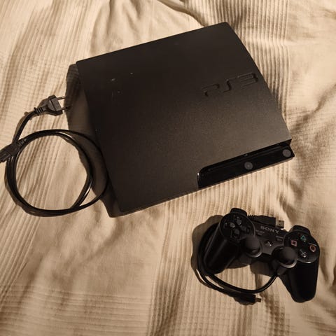 Sony PlayStation 3 spelkonsol med 500GB Lagring och flera spel installerade inklusive trådlös handkontroll och flera spel, den har även spel på hårddisken.